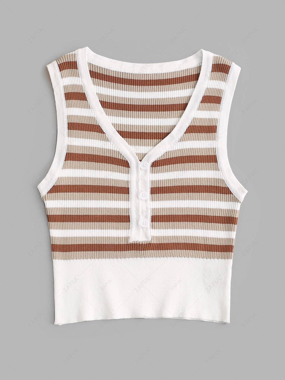 Button Loop Striped Knitted Tank Top – Multi S