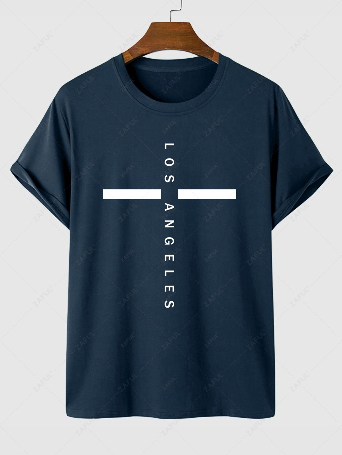 Men’s Los Angeles Letter Graphic Printed Crew Neck Short Sleeves T-shirt – Deep Blue L
